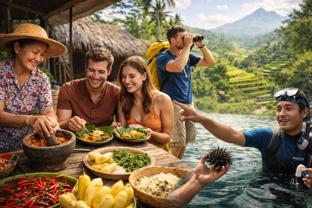 Vivências únicas: gastronomia típica, aventuras na natureza, mergulho, trilhas, encontros com a cultura local. Oferecemos experiências que vão além do turismo convencional, criando memórias verdadeiras e personalizadas.